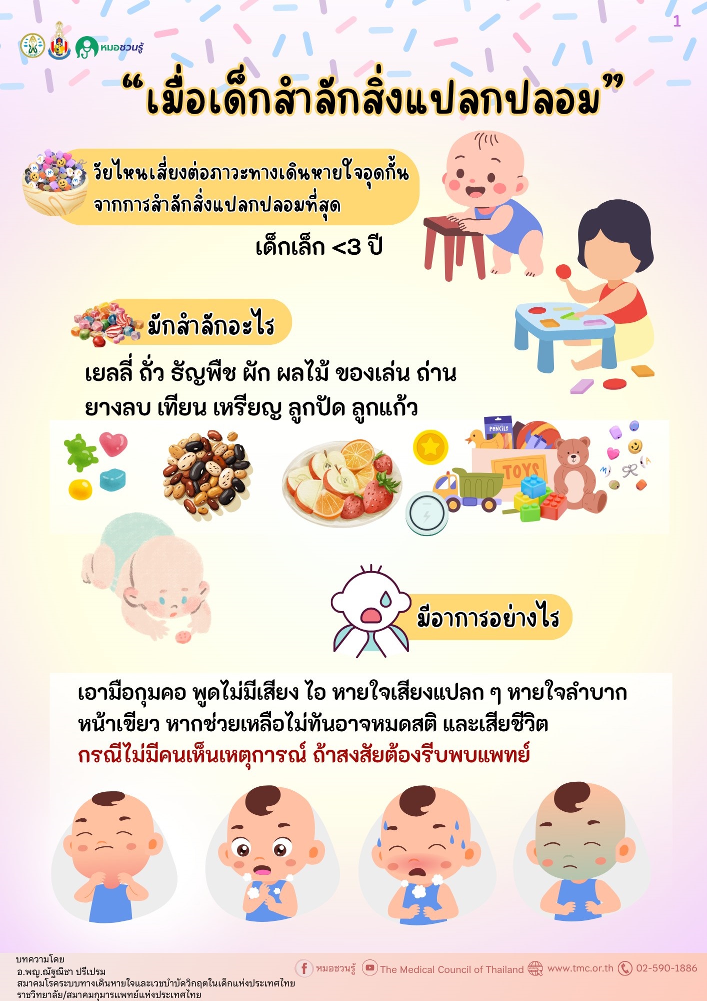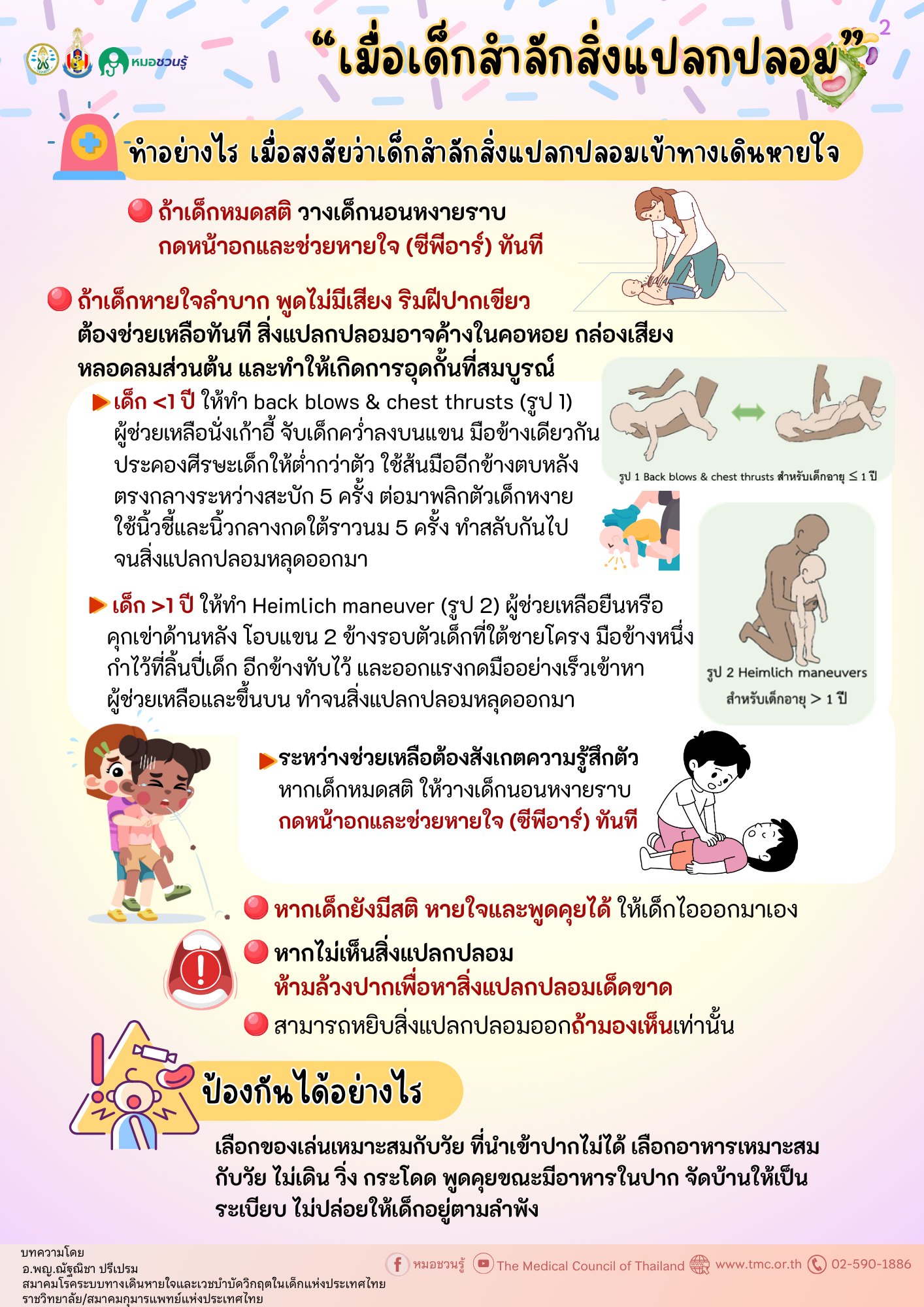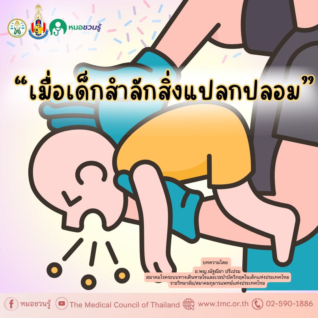 หมอชวนรู้โดยแพทยสภา ตอนที่ 274 ““เมื่อเด็กสำลักสิ่งแปลกปลอม บทความโดย อ.พญ.ณัฐณิชา ปรีเปรม สมาคมโรคระบบทางเดินหายใจและเวชบำบัดวิกฤตในเด็กแห่งประเทศไทย และราชวิทยาลัย/สมาคมกุมารแพทย์แห่งประเทศไทย ภาพประกอบจาก อ.พญ.ณัฐณิชา ปรีเปรม และ Canva ”https://www.facebook.com/share/p/14MWEzapBYY/