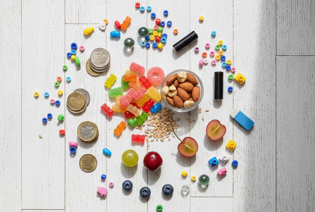 เราไม่ได้กลัวแค่ถั่วหรือเยลลี่ แต่ต้องระวัง "ของใช้" ที่อยู่รอบตัวด้วย: อาหารที่กลืนยาก: เยลลี่, ถั่ว, ธัญพืช, ผลไม้เนื้อแข็งหรือกลม (ต้องหั่นก่อนเสมอ!)วัตถุอันตราย: เหรียญ, ลูกปัด, ลูกแก้ว, ถ่านก้อนเล็ก, ยางลบ, ชิ้นส่วนของเล่นขนาดเล็ก