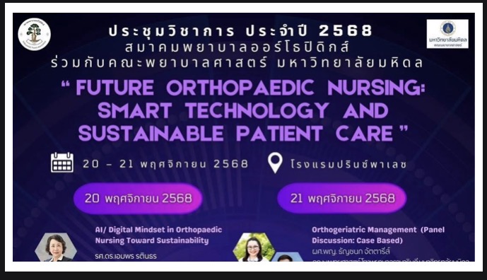 วันที่ 5 – 7 พฤศจิกายน 2568 ณ โรงแรมพูลแมน ราชา ออคิด สอบถามรายละเอียดเพิ่มเติมได้ที่ : คณะพยาบาลศาสตร์ มหาวิทยาลัยขอนแก่น