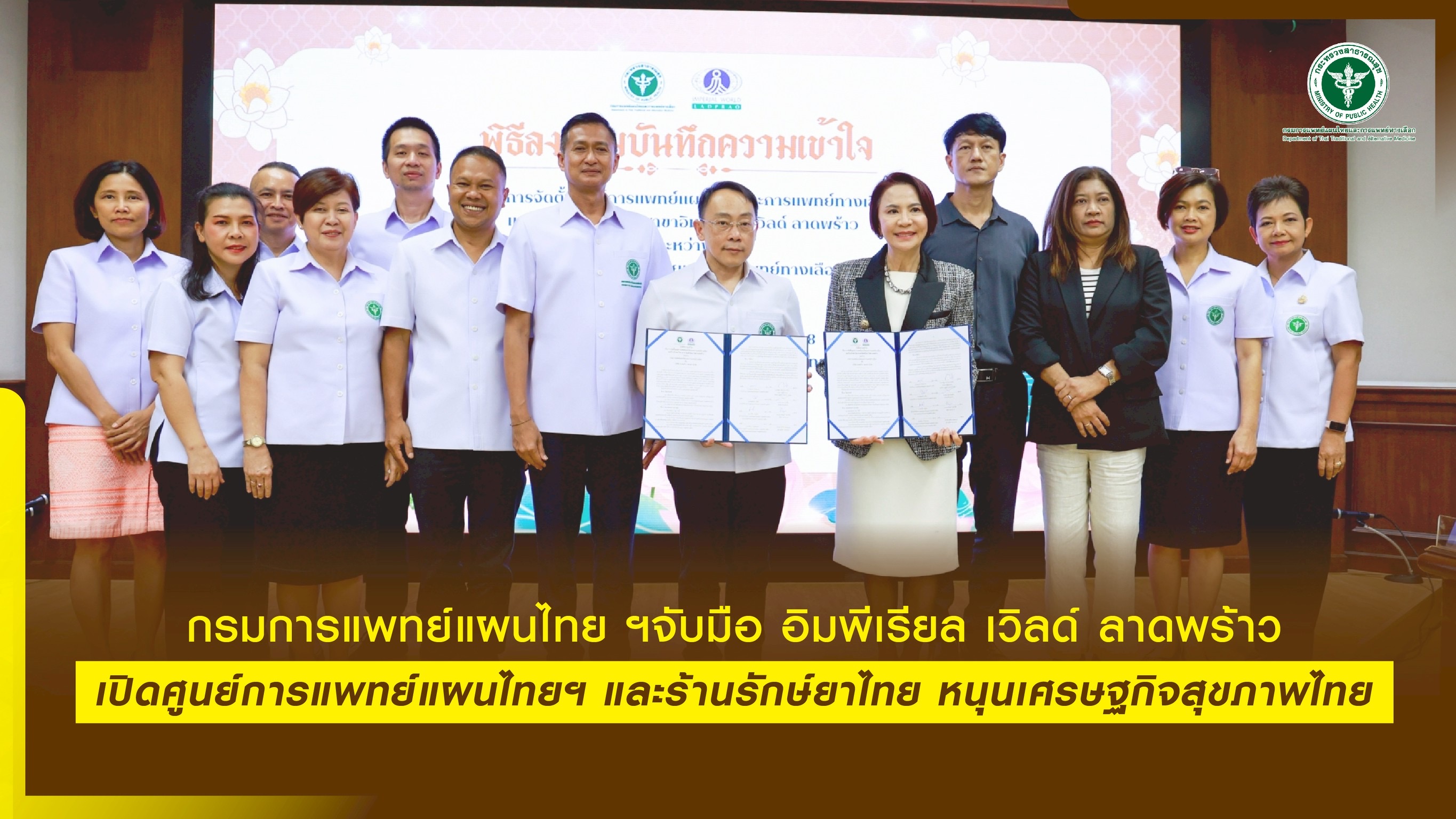 กรมการแพทย์แผนไทยฯ จับมือ อิมพีเรียล เวิลด์ ลาดพร้าว เปิดศูนย์การแพทย์แผนไทยฯ และร้านรักษ์ยาไทย หนุนเศรษฐกิจสุขภาพไทย