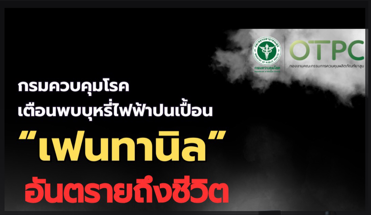 กรมควบคุมโรค เตือนพบบุหรี่ไฟฟ้าปนเปื้อน “เฟนทานิล” อันตรายถึงชีวิต